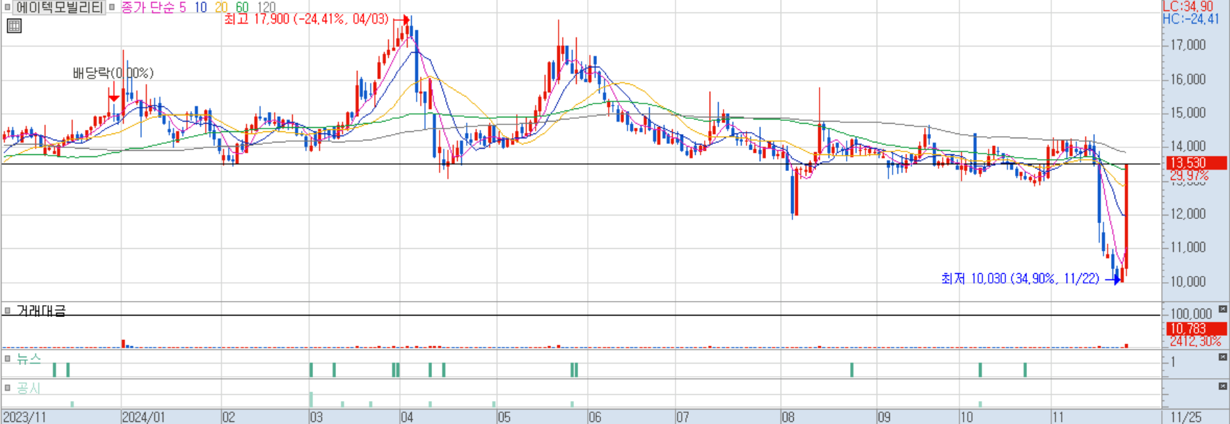 2024/11/25 이재명 더불어민주당 대표, 위증교사혐의 1심 무죄 선고 소식에 이재명 테마 상승 속 상한가