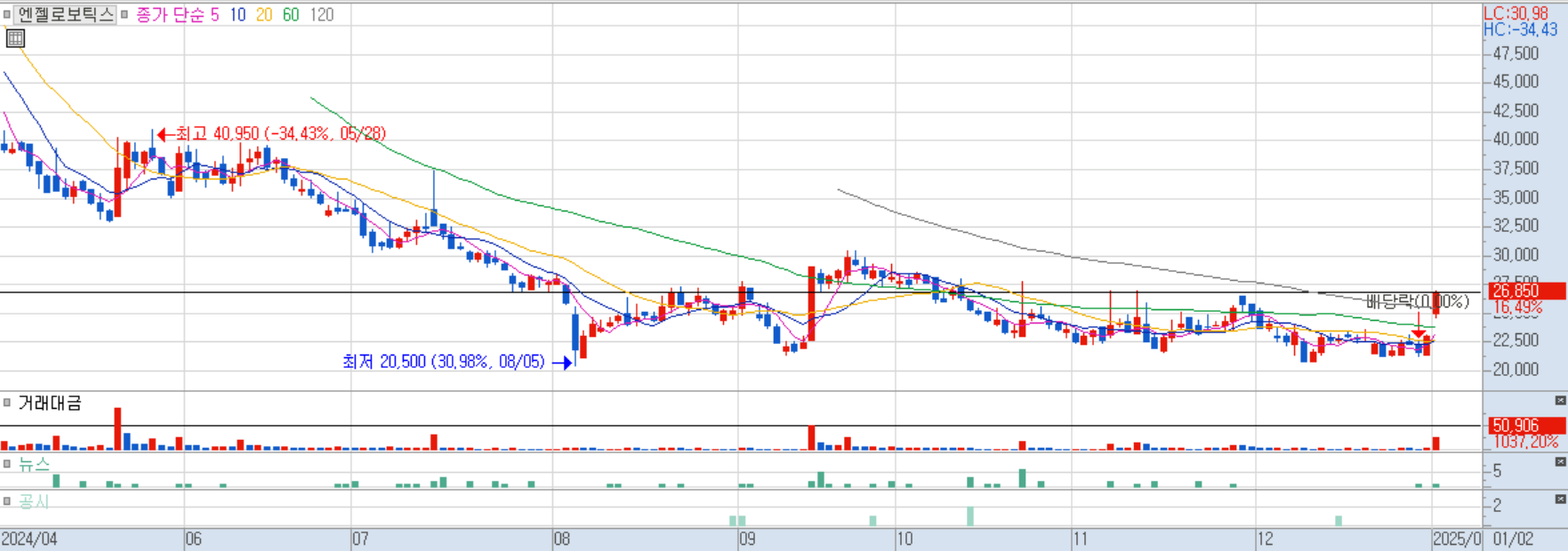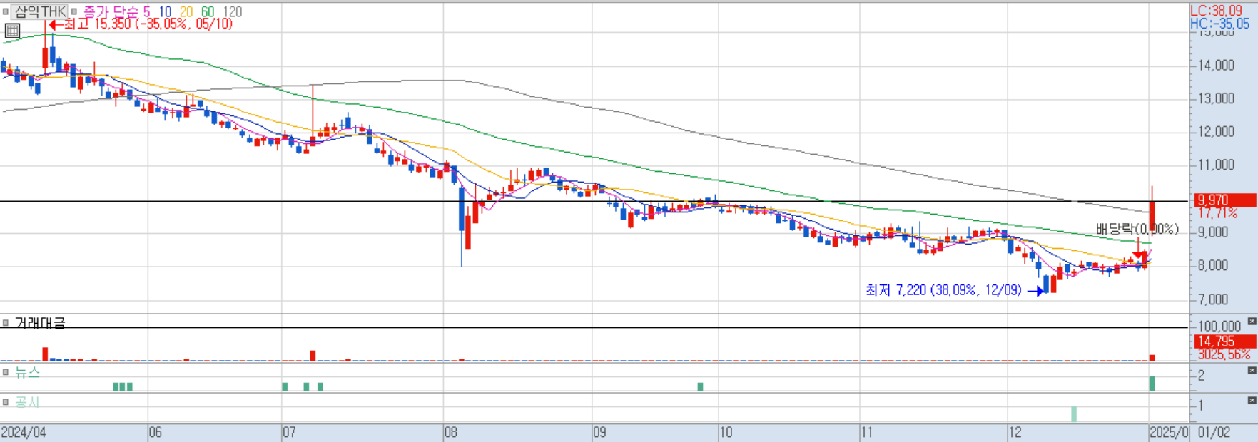 2025/01/02 로봇(산업용/협동로봇 등) 및 자동차부품 테마 상승 속 급등