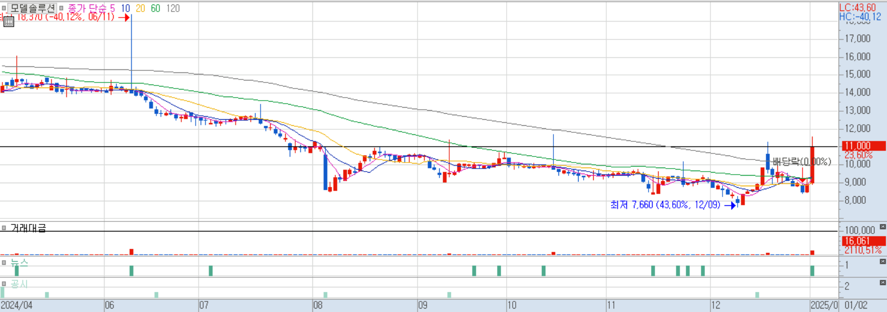 2024/01/25 총 1,836억원 규모 현대자동차 전기차 플랫폼 부품 수주 소식에 급등