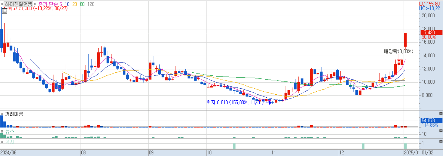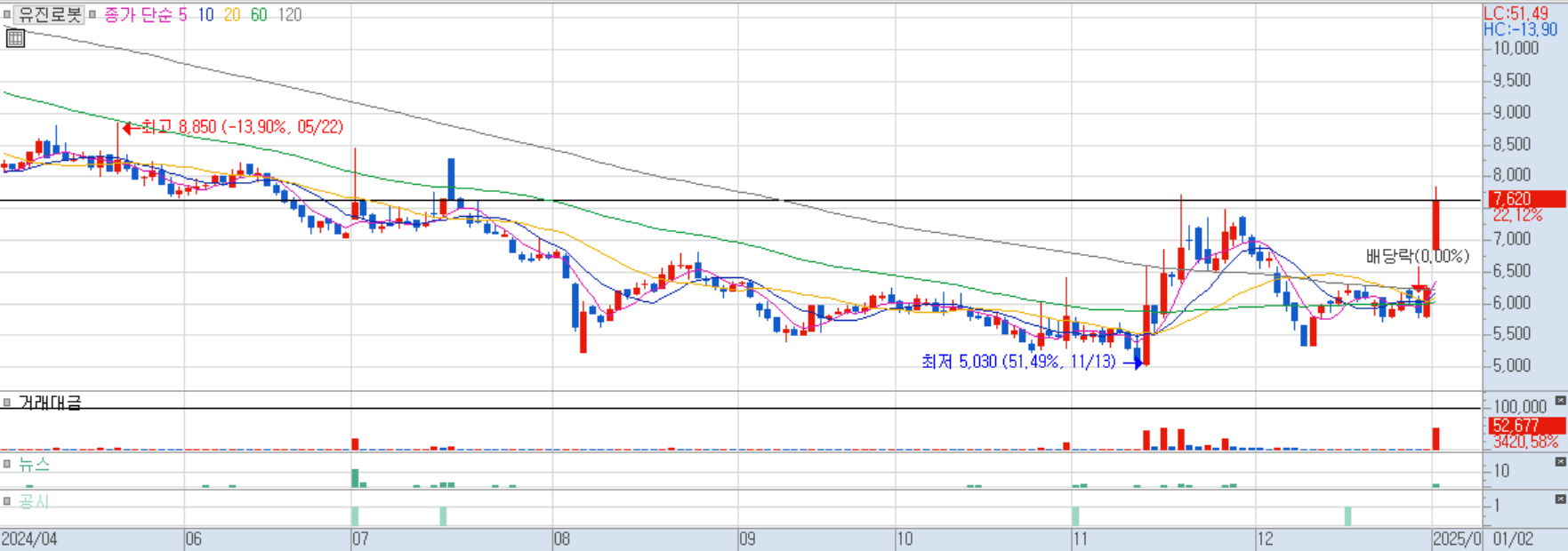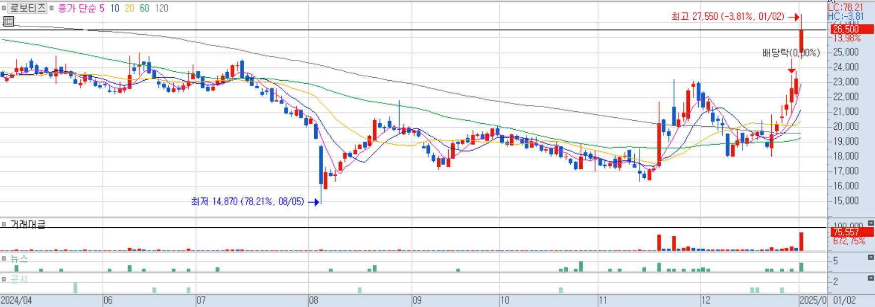 2025/01/02 로봇(산업용/협동로봇 등) 및 전기차 테마 상승 속 상한가