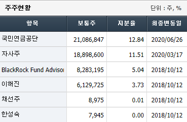 그 다음 자사주로 11.51% 지분을 갖고 있습니다.
