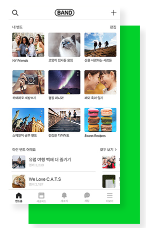 그룹형 소셜 네트워크 서비스(SNS)인 밴드(BAND)는 다양한 형태의 그룹 활동을 지원하는 모임 앱니다.