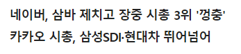 카카오의 시가총액은 삼성SDI와 현대차를 뛰어넘었습니다.