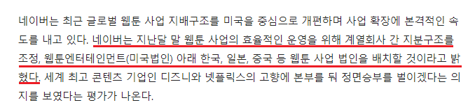 네이버가 최근 글로벌 웹툰 사업 지배구조를 미국을 중심으로 개편했습니다.