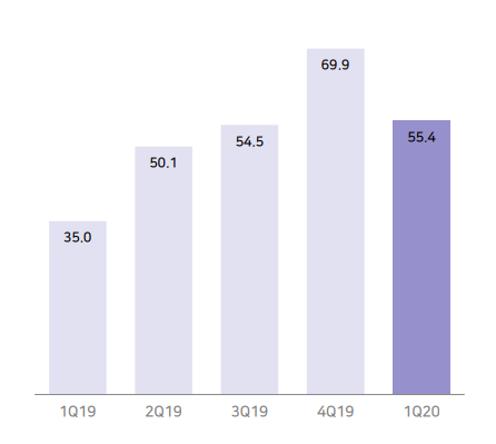 1Q20 YoY 49.4%↑ / QoQ 8.9%↑