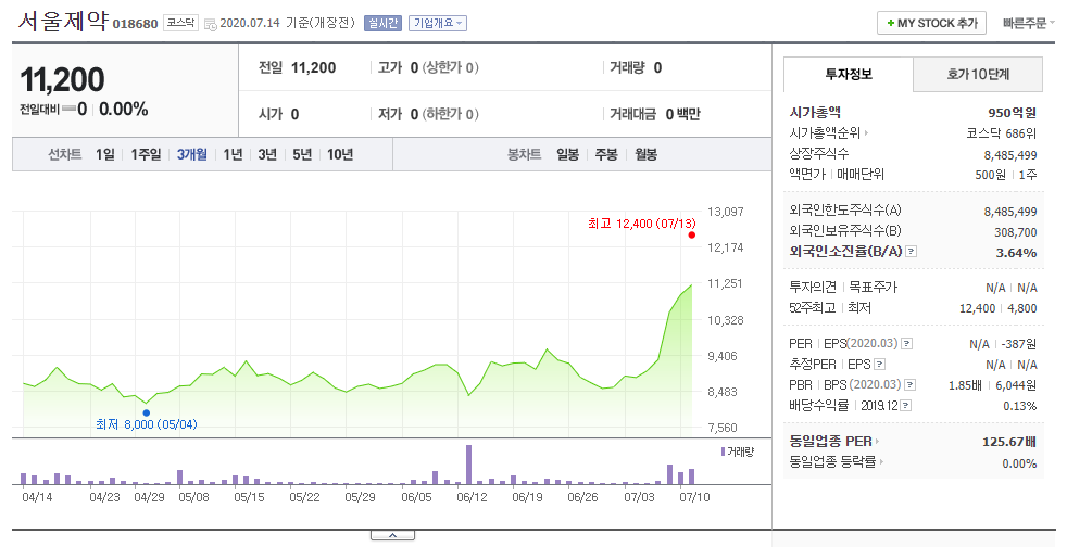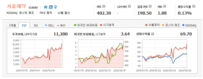 서울제약은 1985년 12월 23일 설립되어 의약품(양약)제조 및 판매업을 목적으로 하여 왔으며 2000년 7월 26일 코스닥시장에 상장함.
