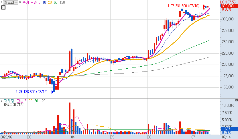 셀트리온은 화이자제약이 보유하고 있던 램시마 판매권을 승계한 기업으로 화이자 관련주로 분류됐습니다.