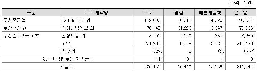 두산중공업은 6월에 서부발전과 김포열병합발전소의 파워블러 부문 및 건설공사 부문 계약을 체결했고 총 수주금액은 약 3600억원 입니다.