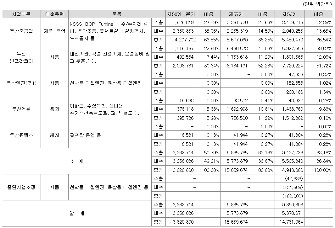 두산중공업은 국내외 시장 및 정책 변화를 반영해 그 동안 가스터빈, 신재생, 서비스 등을 중심으로 사업 포트폴리오 전환을 추진해 오고 있습니다.