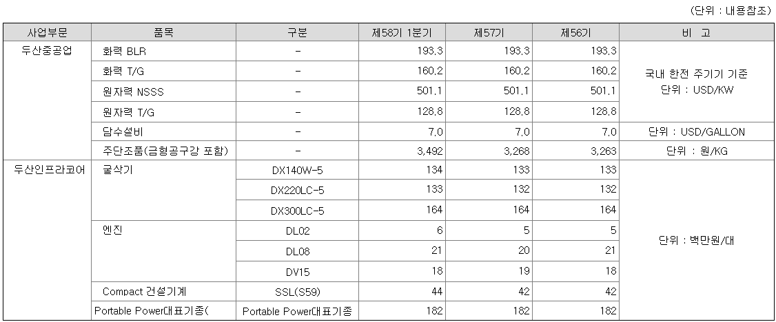 글로벌 복합화력 시장이 확대되고 있고, 국내에서도 노후 복합화력 폐지와 이를 대체하기 위한 한국형 표준 복합화력 사업이 진행됨에 따라, 두산중공업은 고수익 H급 OEM GT 생산 및 서비스 사업에 집중할 계획입니다.
