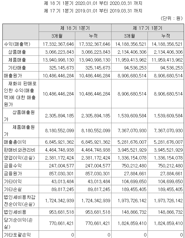 2020년 3월 전년동기 대비 연결기준 매출액은 14% 증가, 영업이익은 0.5% 증가, 당기순이익은 58.6% 감소했습니다.